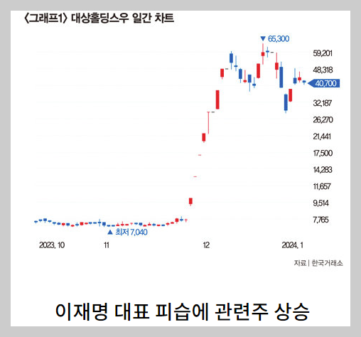 1월 2일에 이재명 대표가 부산 가덕도 신공항 현장을 방문하던 중 피습을 당했다는 소식에 이제명 테마주가 강세를 보였습니다. 후보들의 이슈 하나하나가 주가에 바로바로 반영되는 현상을 정치 테마주라고 하며 22대 총선까지 이런 이슈사항을 체크하고 투자를 한다면 좋은 성과 있으리라 생각합니다.